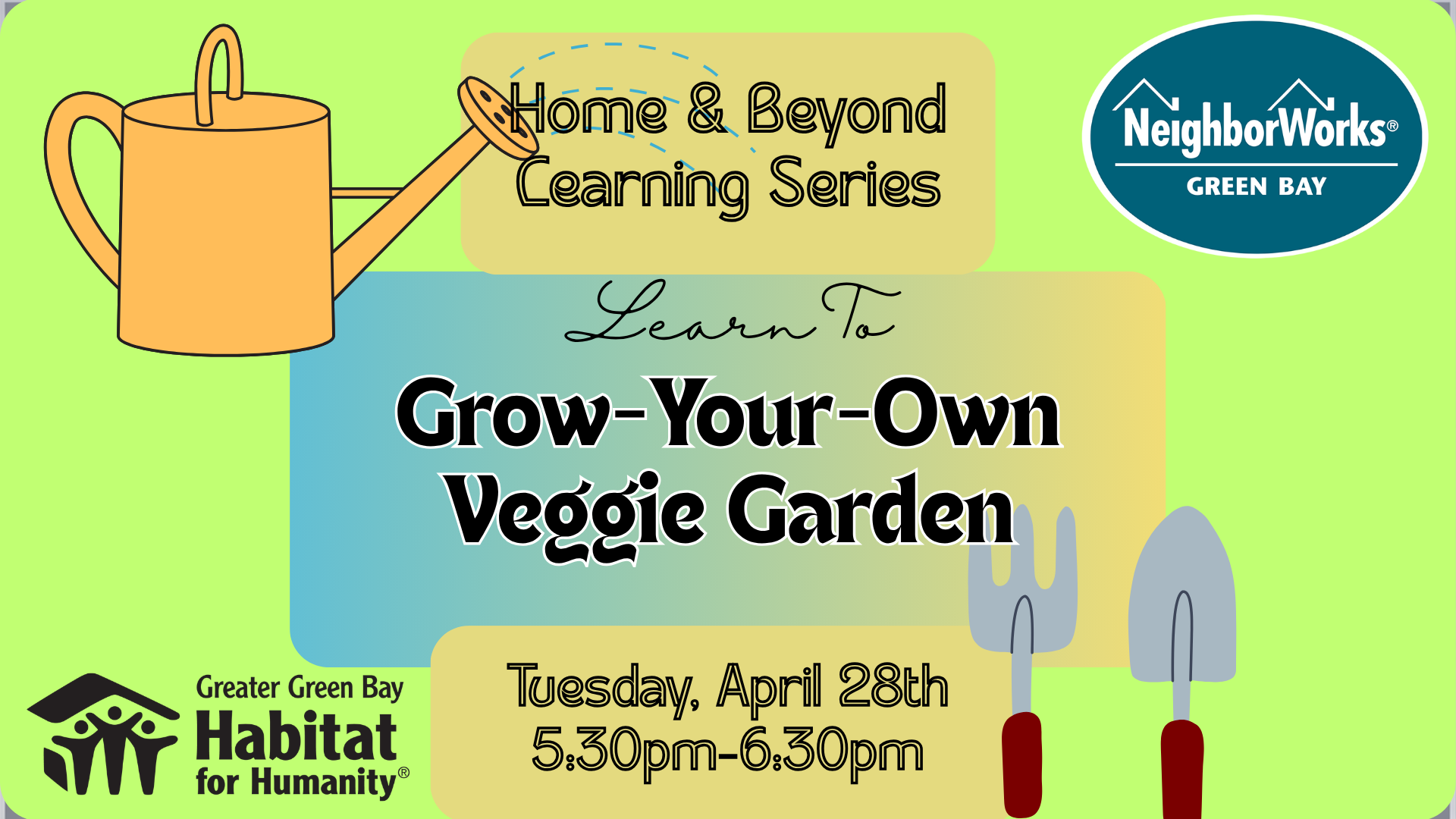Join NeighborWorks Green Bay and Green Bay Habitat for Humanity for a Home & Beyond Series workshop focused on Food & Nutrition. In this session, local experts Beth and Dave Woods will share tips and resources to help you start and sustain a vegetable garden. Participants will learn how to grow their own food affordably, maintain a healthy garden throughout the season, and make the most of available space.